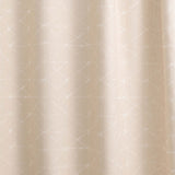 Detail of fabric in a mottled lattice print in white on a cream field.