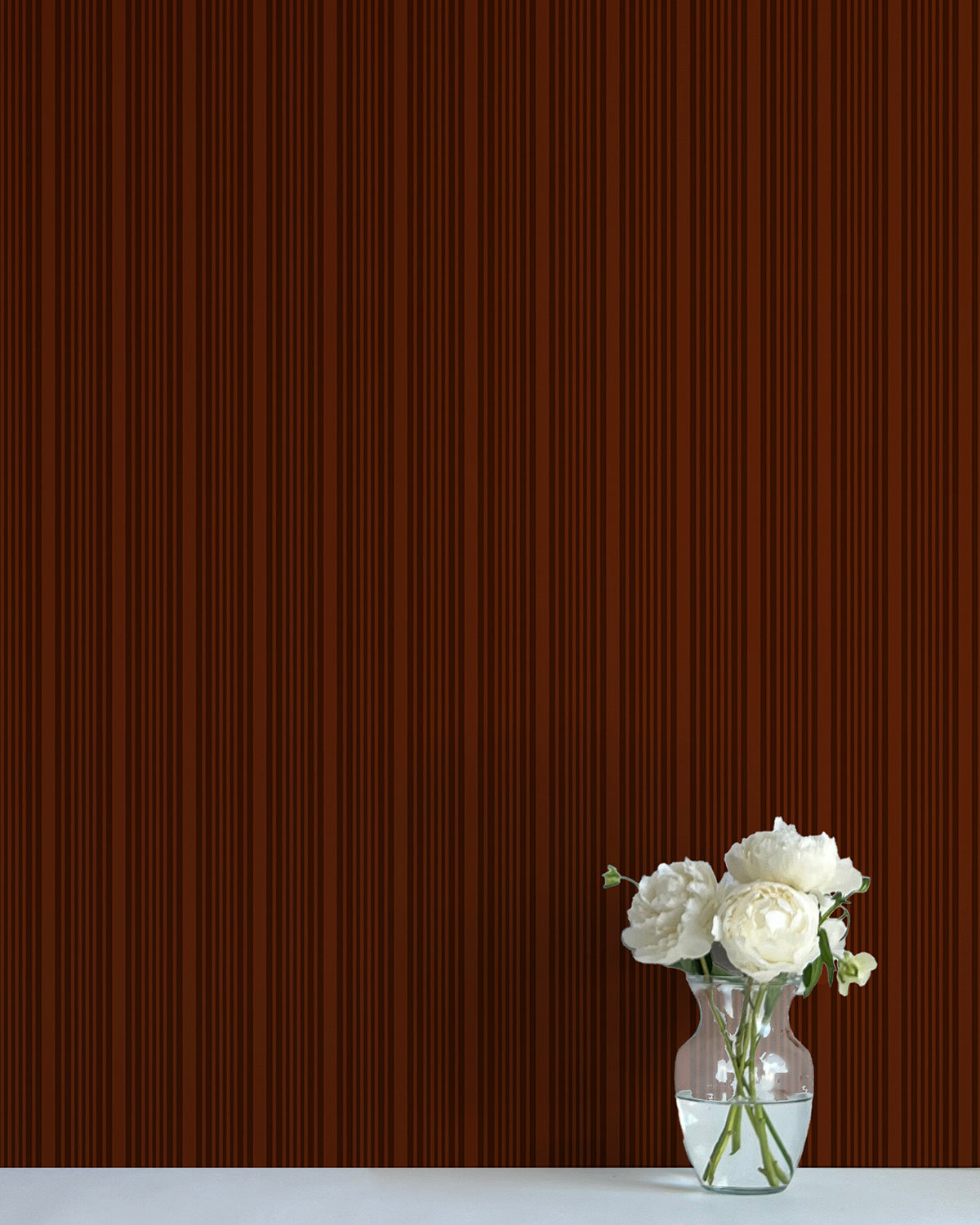 Mixed width striped wallpaper in brown and orange