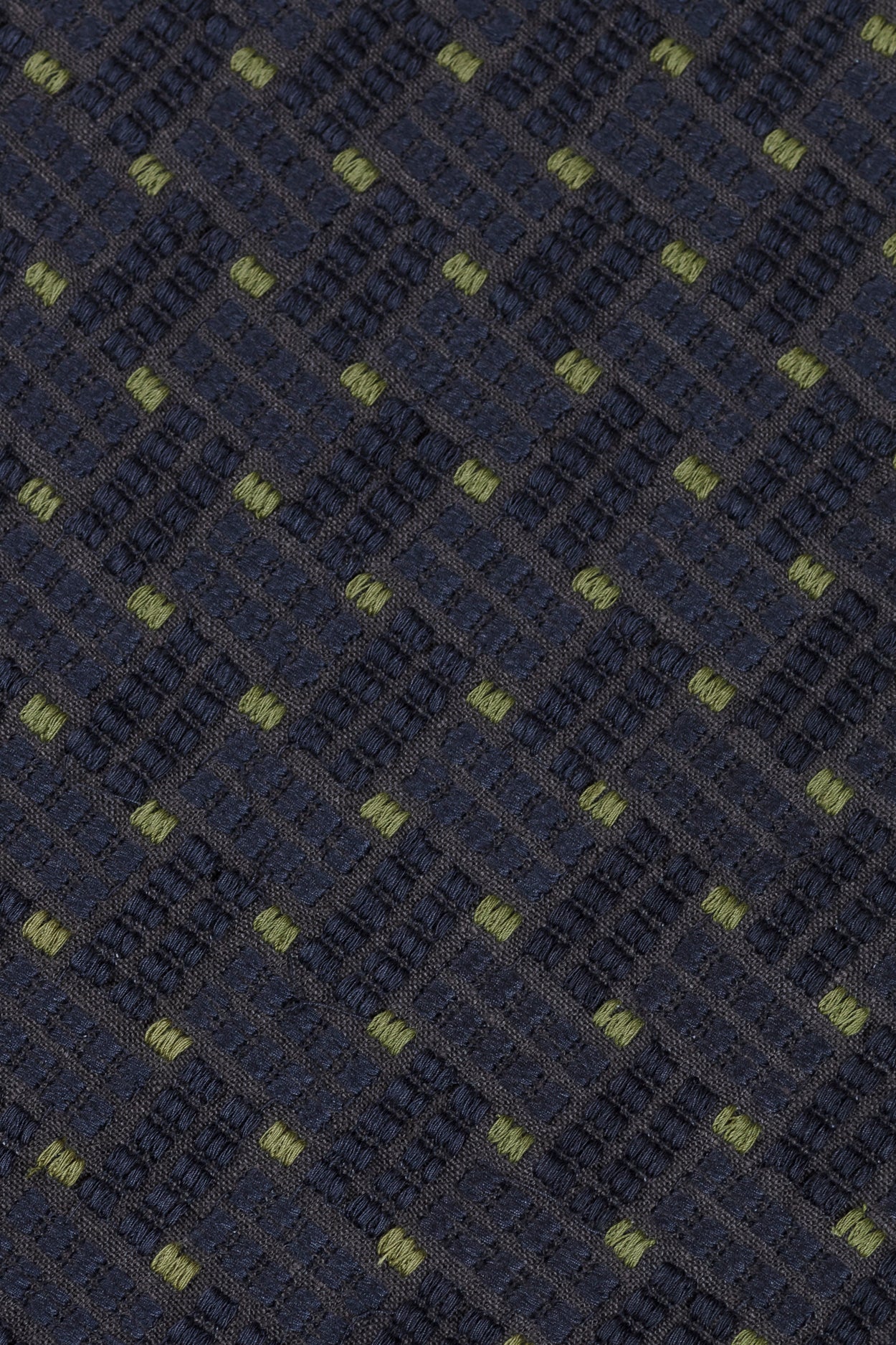Detail image of basketweave embroidered fabrics in array of moody jewel tones.
