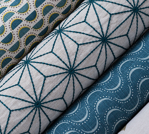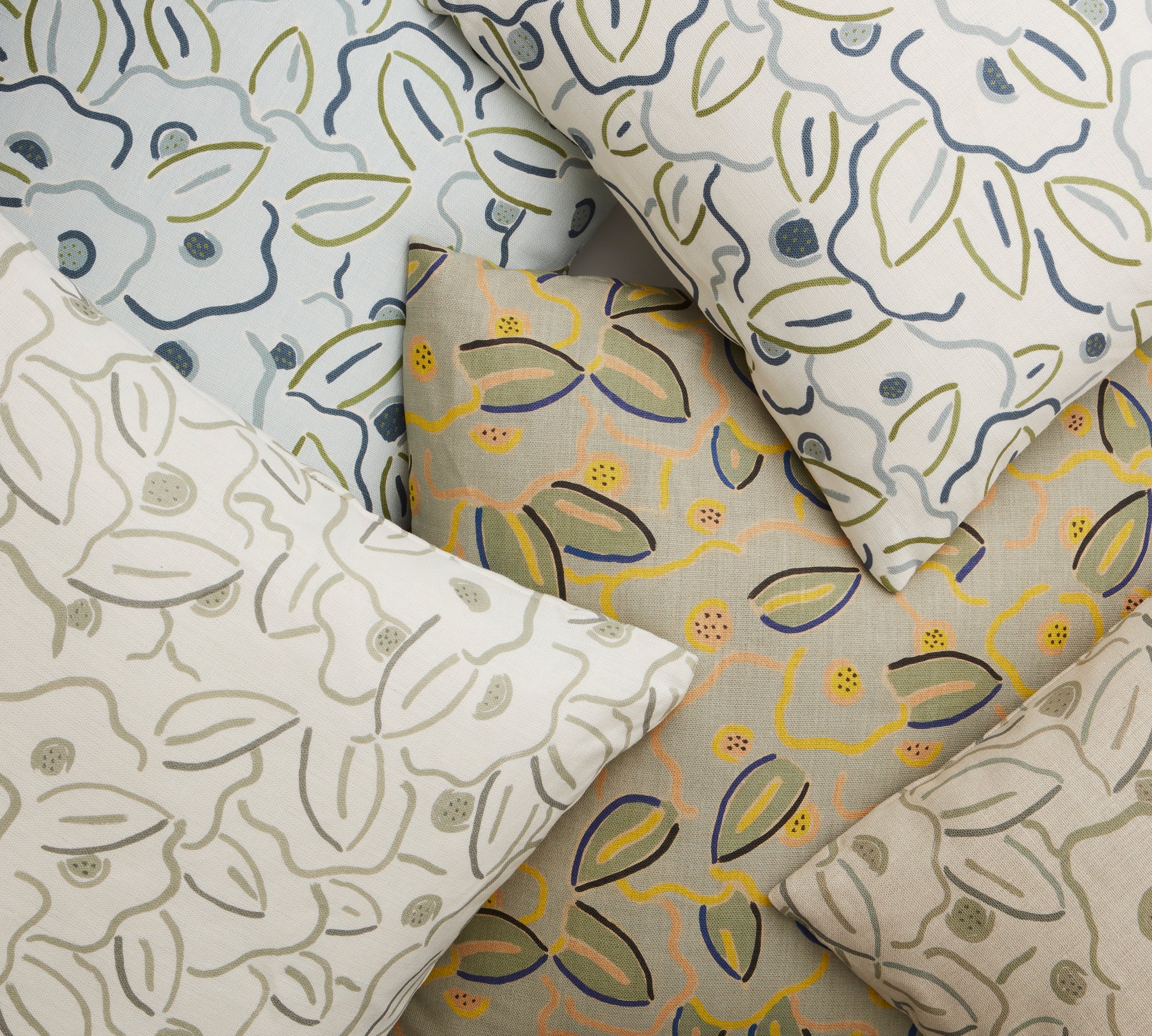 Inspired by a coastal landscape, this play on a stripe is hand printed on Belgian linen.