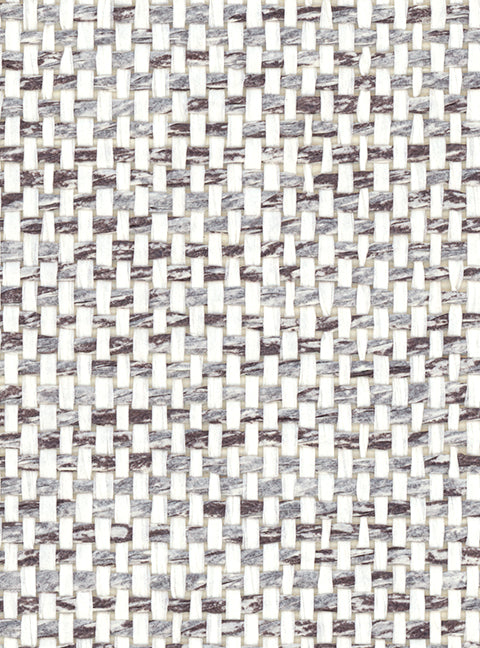 Detail of a paperweave grasscloth wallpaper in mottled grey, black and white.