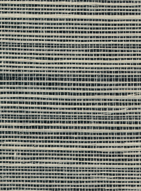 Detail of a sisal grasscloth wallpaper in white on a black paper backing.