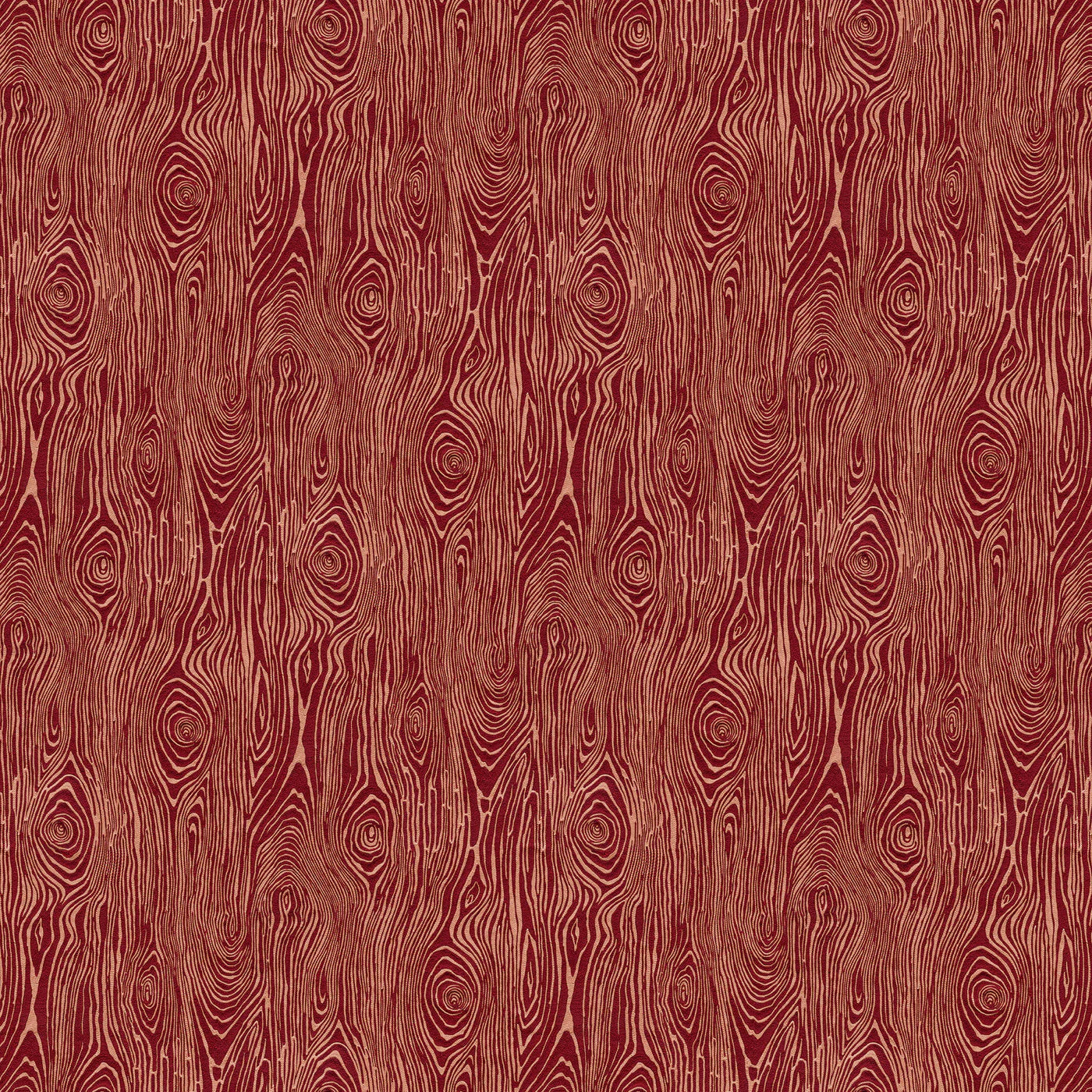 Scaled-out view of wallpaper in a textural wood grain print in coral on a red field.