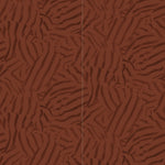Detail of wallpaper in a playful broken stripe print in purple on a red field.