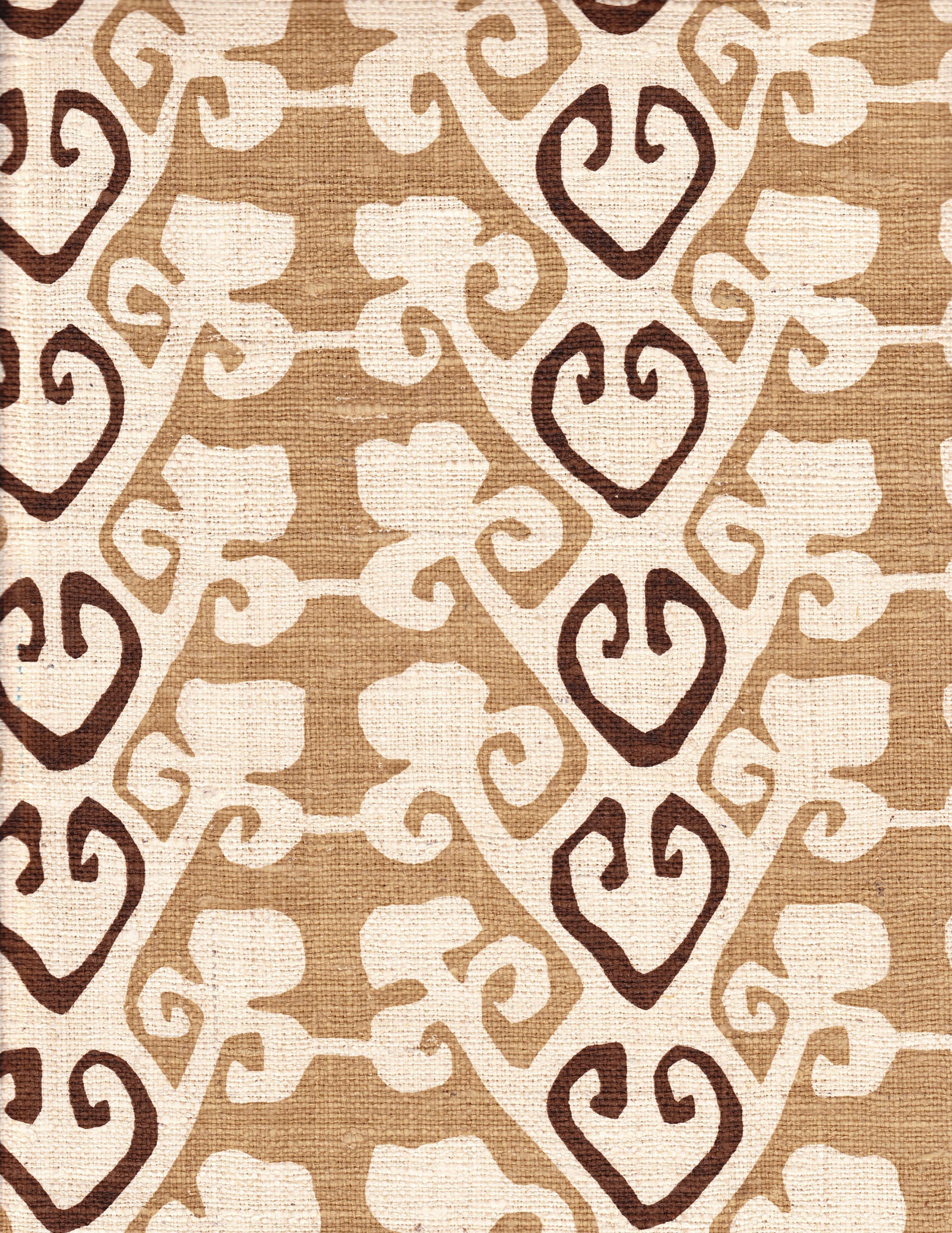 Detail of fabric in a minimalist botanical stripe in shades of brown on a cream field.