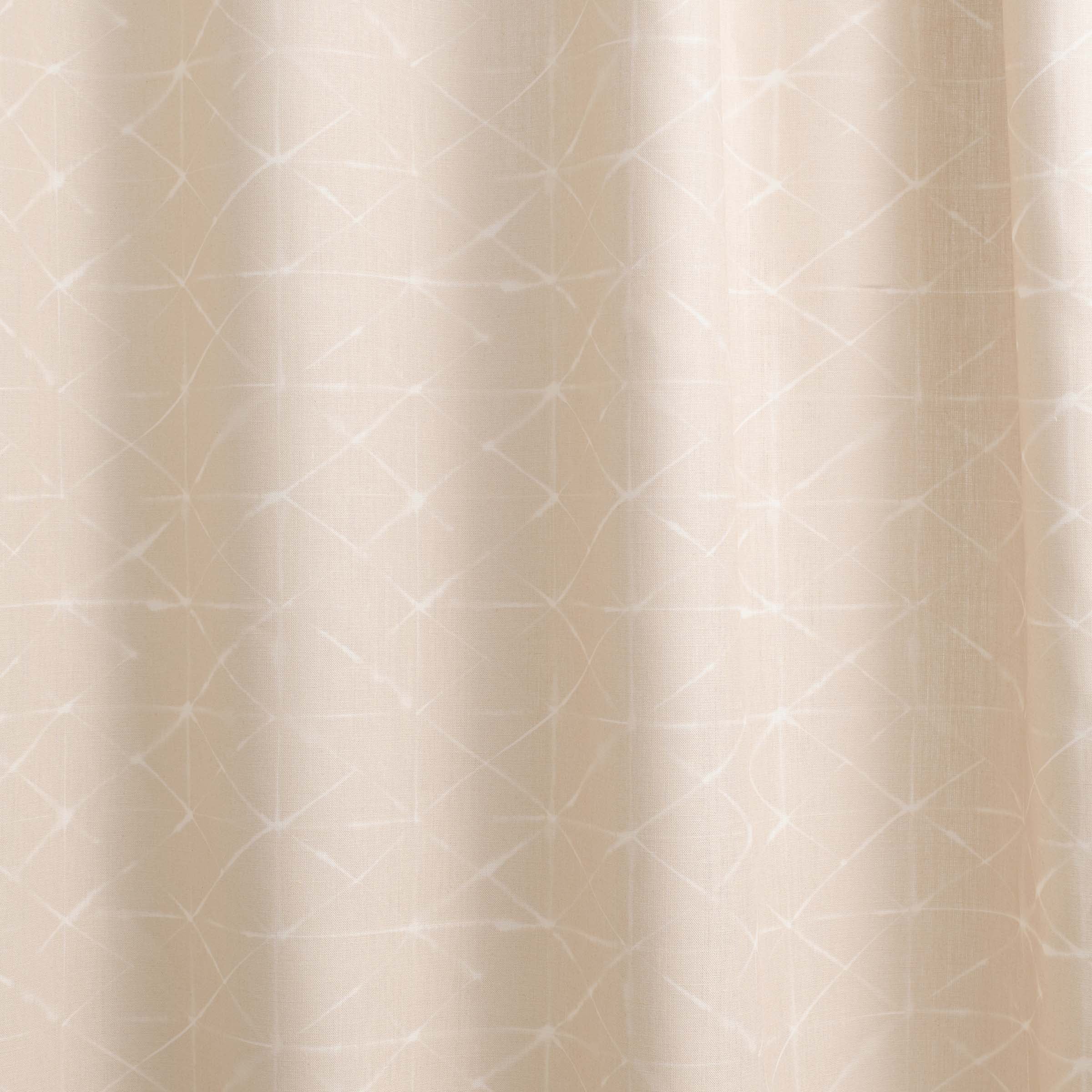 Draped fabric yardage in a mottled lattice print in white on a cream field.