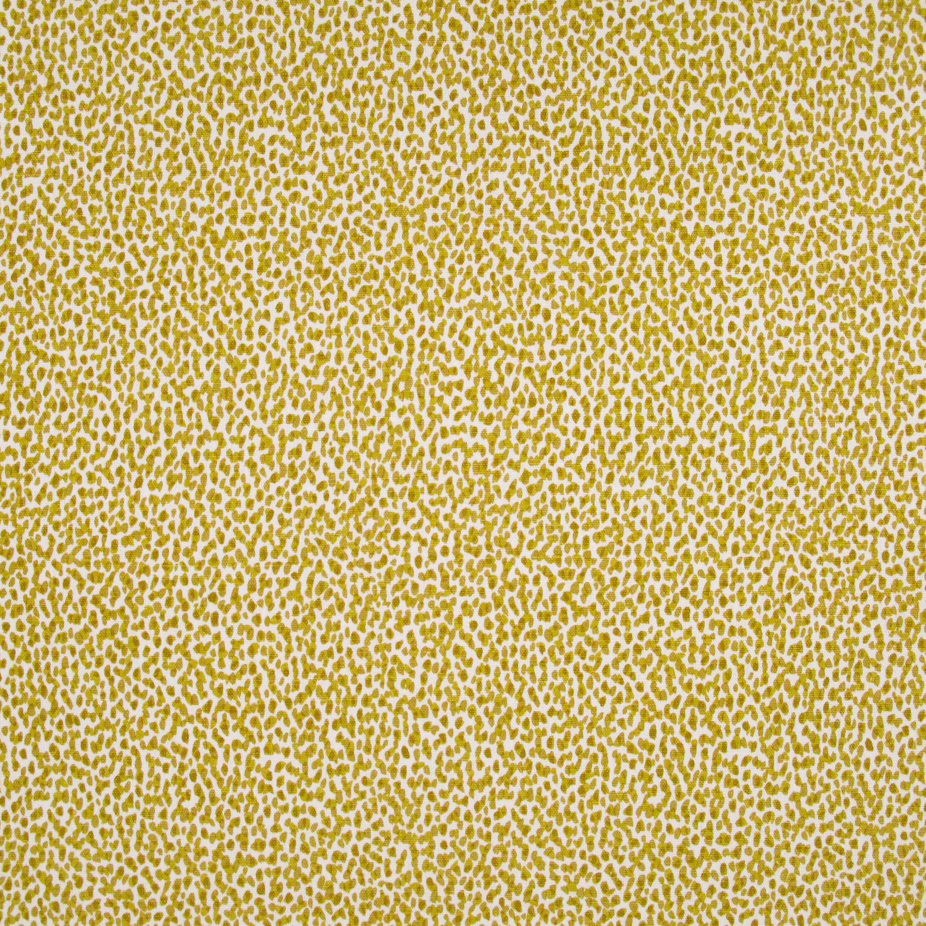 Fabric in a dappled animal print in shades of olive and mustard on a cream field.