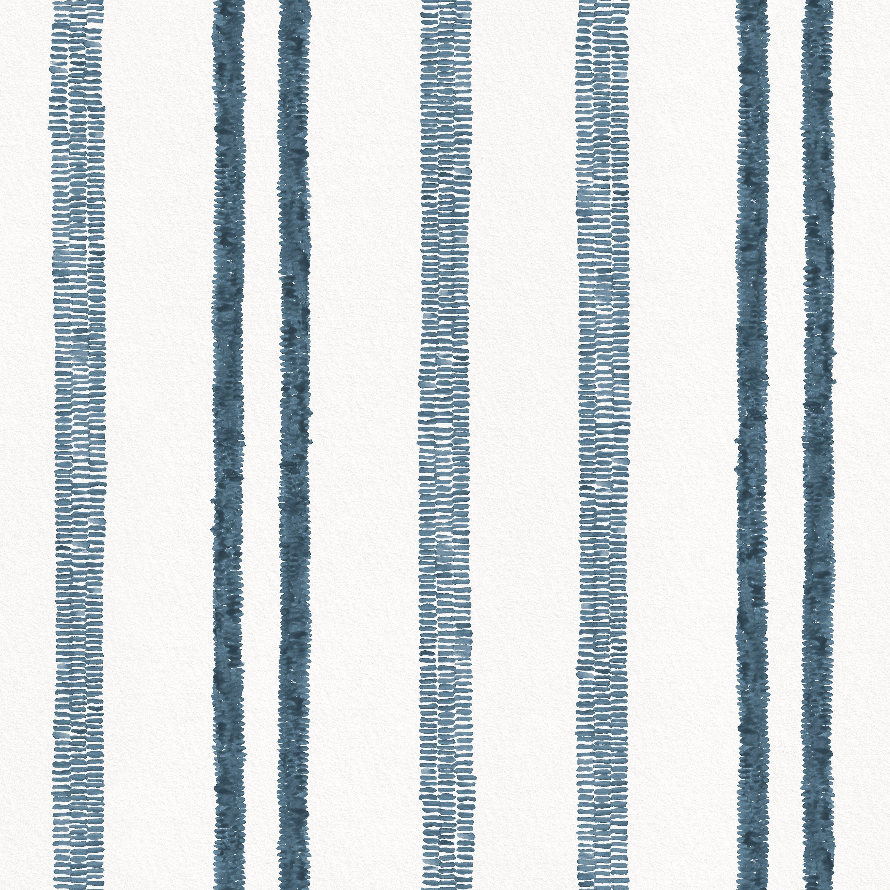 Detail of wallpaper in a textural stripe pattern in navy on a white field.