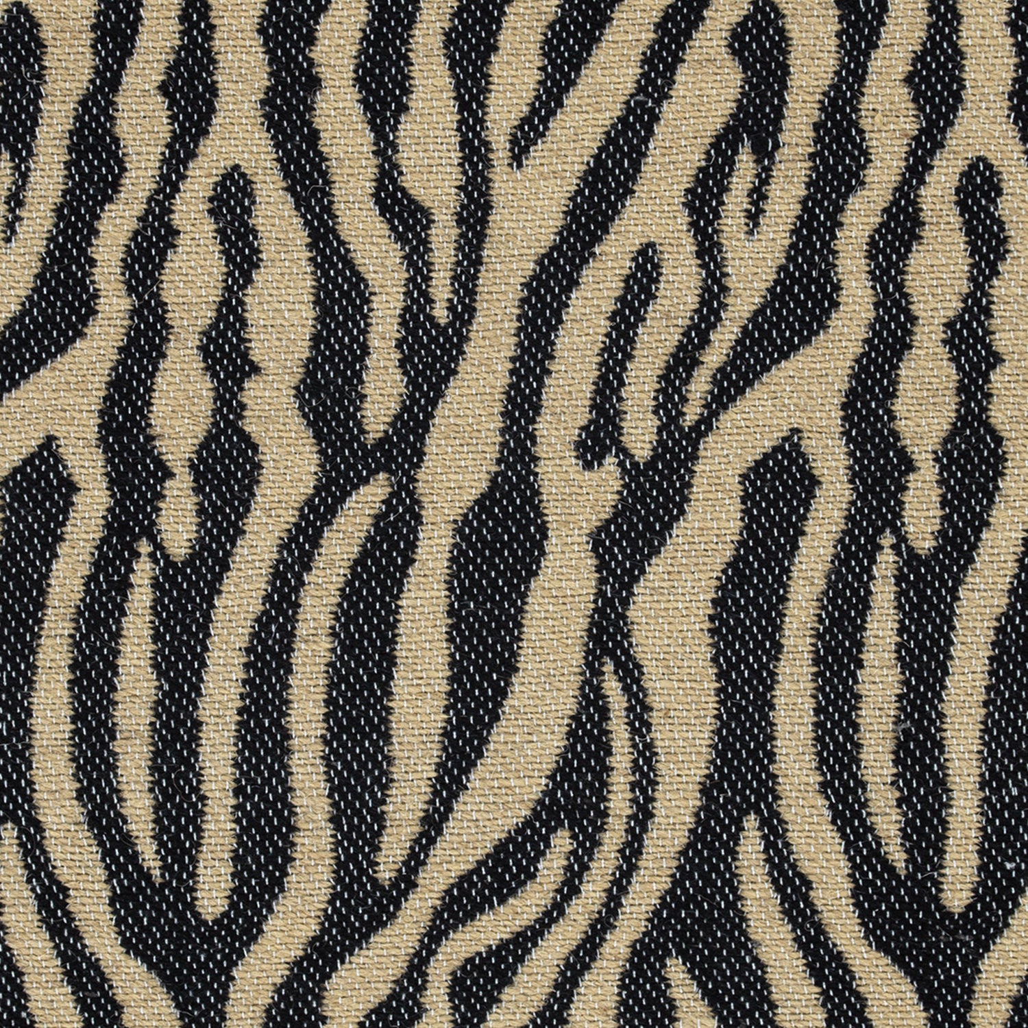 Wool-blend broadloom carpet swatch in a black and tan tiger print weave.