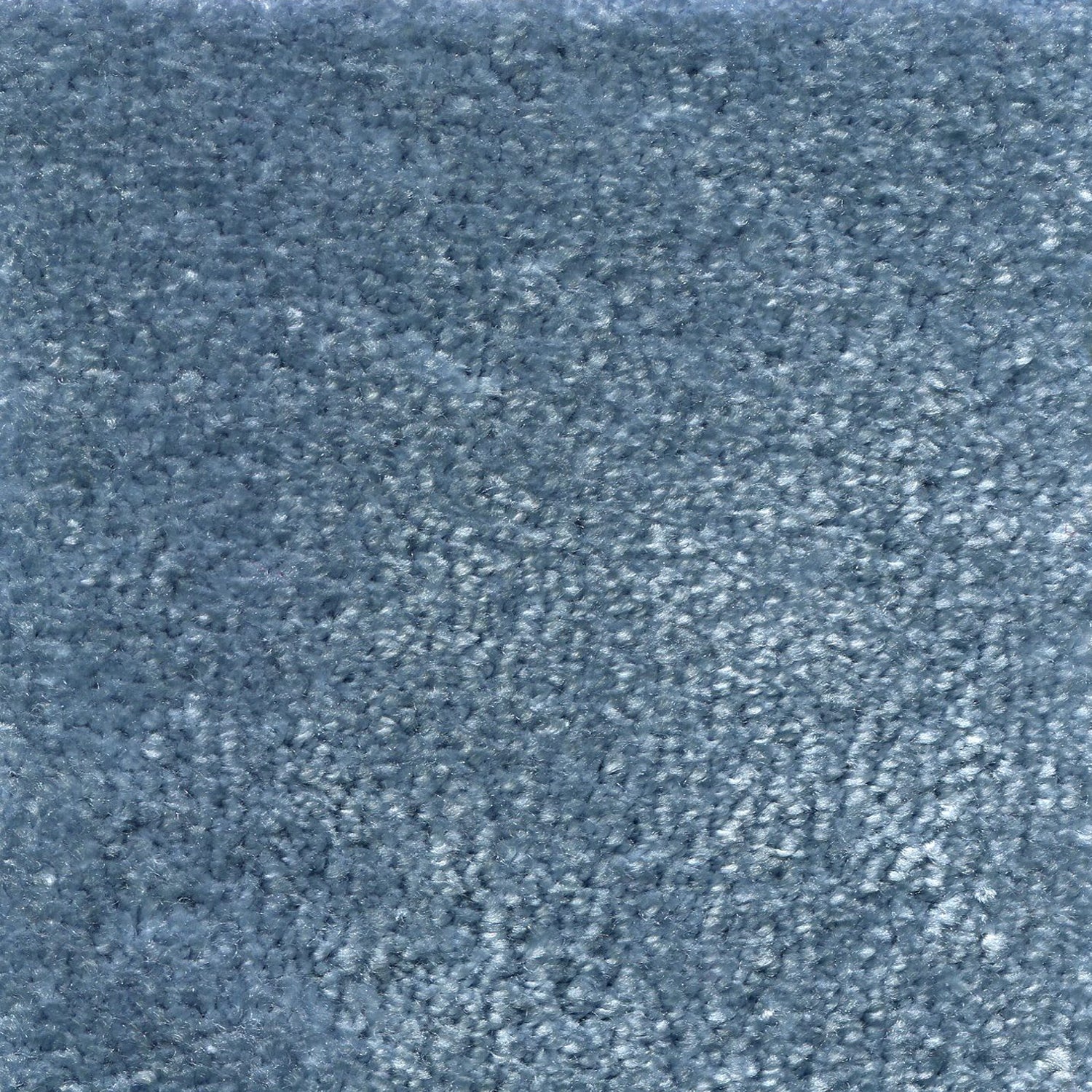 Synthetic blend broadloom carpet swatch in a cut pile texture in blue.