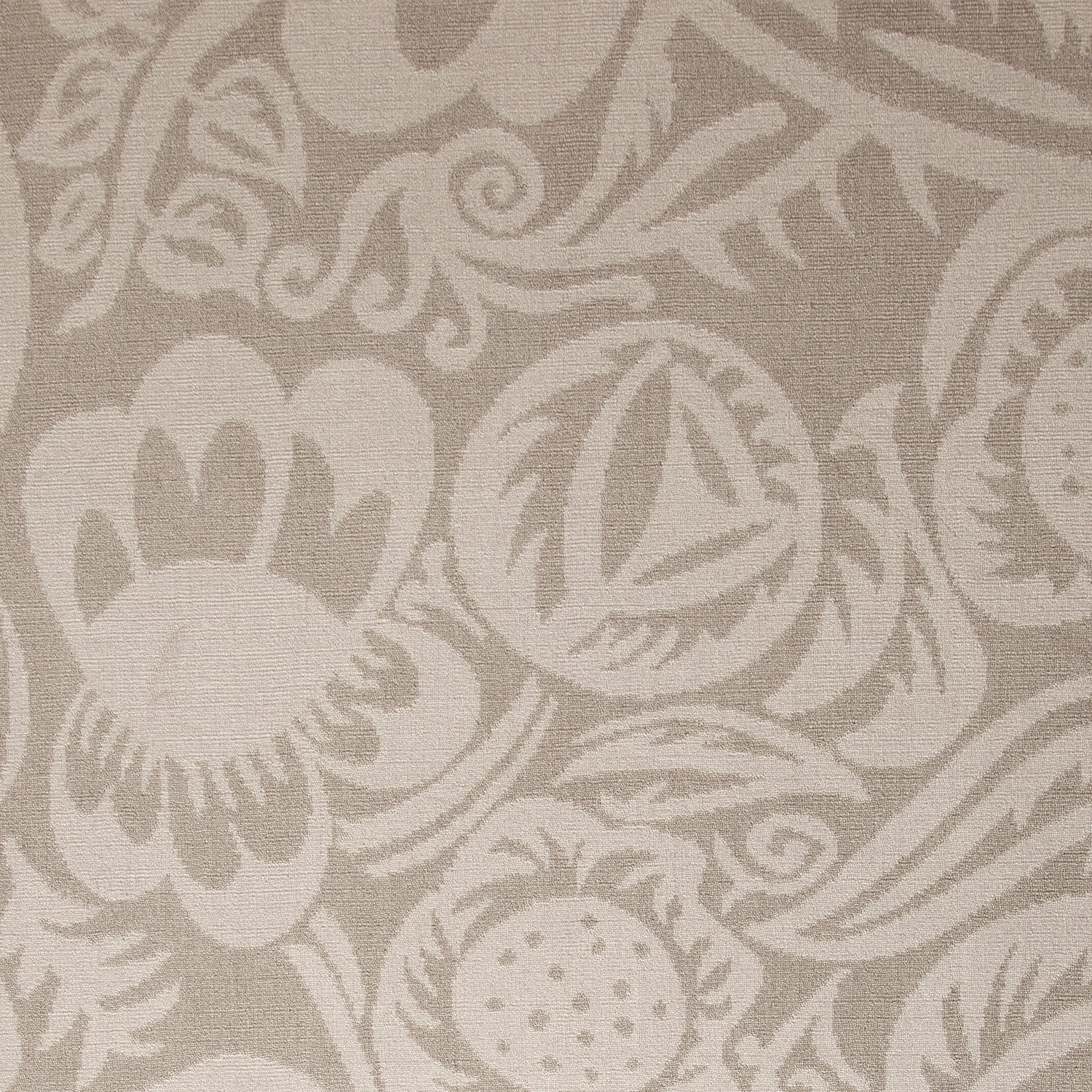 Wool-silk broadloom carpet swatch in a floral paisley pattern in light silver on a silver field.