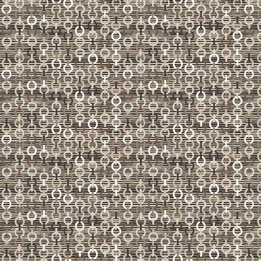 Scaled-out view of wallpaper in a playful paper chain stripe print in shades of cream, brown and black.