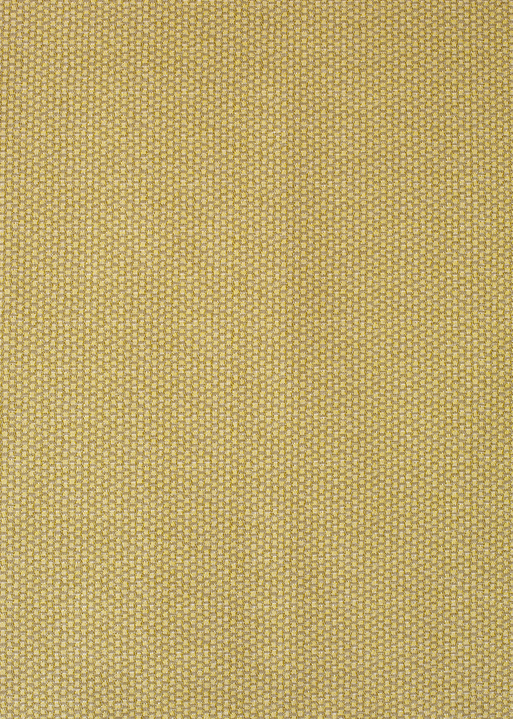 Detail of the reverse side of fabric in a dense checked weave in gold and tan.