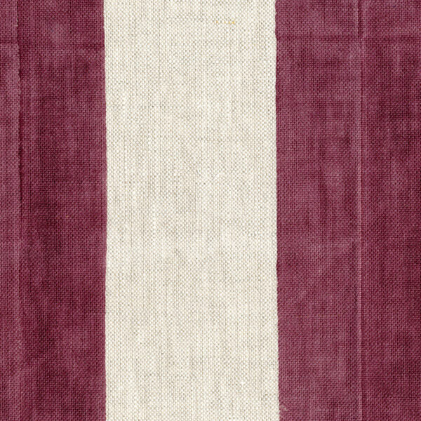 Fabric in a wide stripe pattern in maroon and cream.