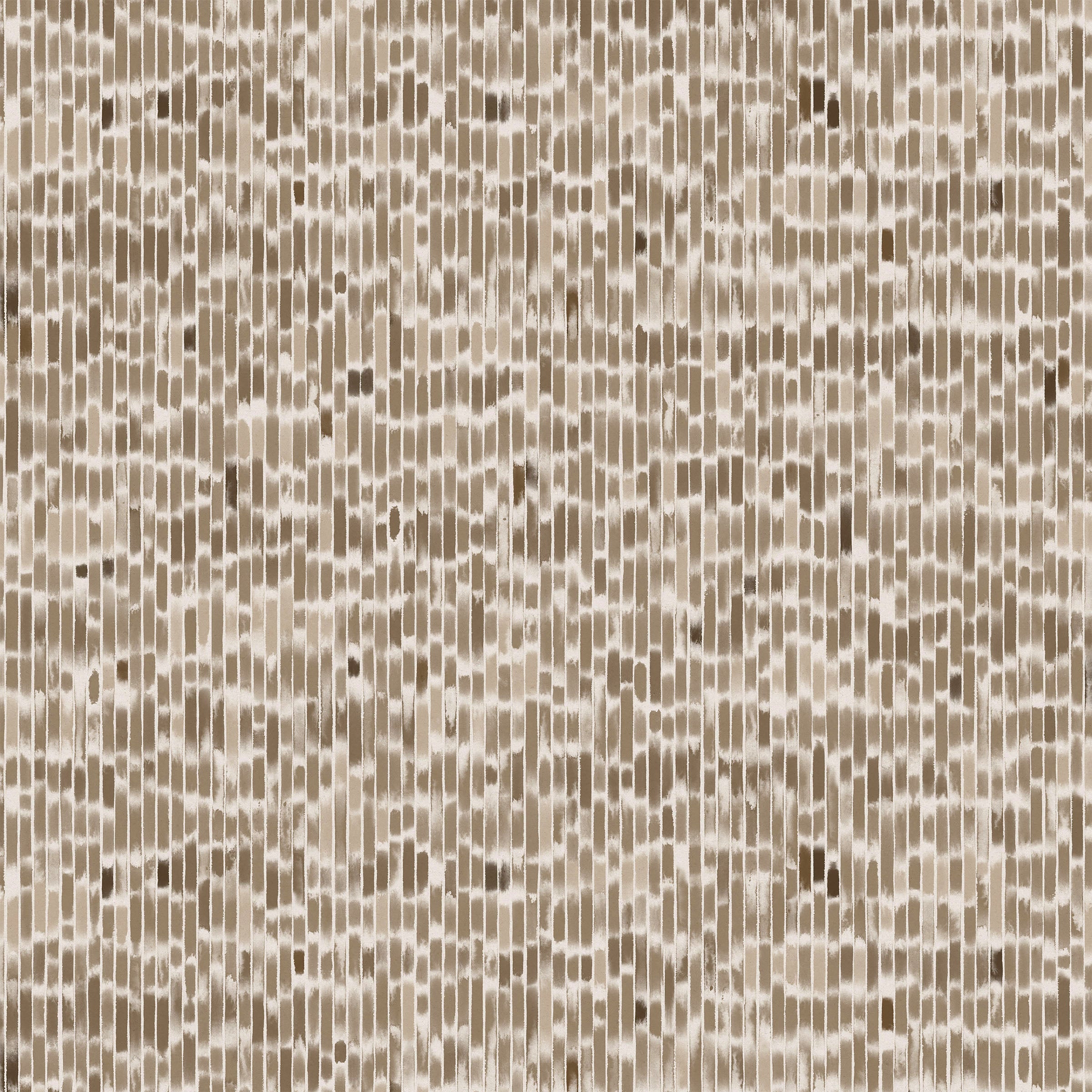 Detail of fabric in a linear check pattern in shades of brown on a white field.