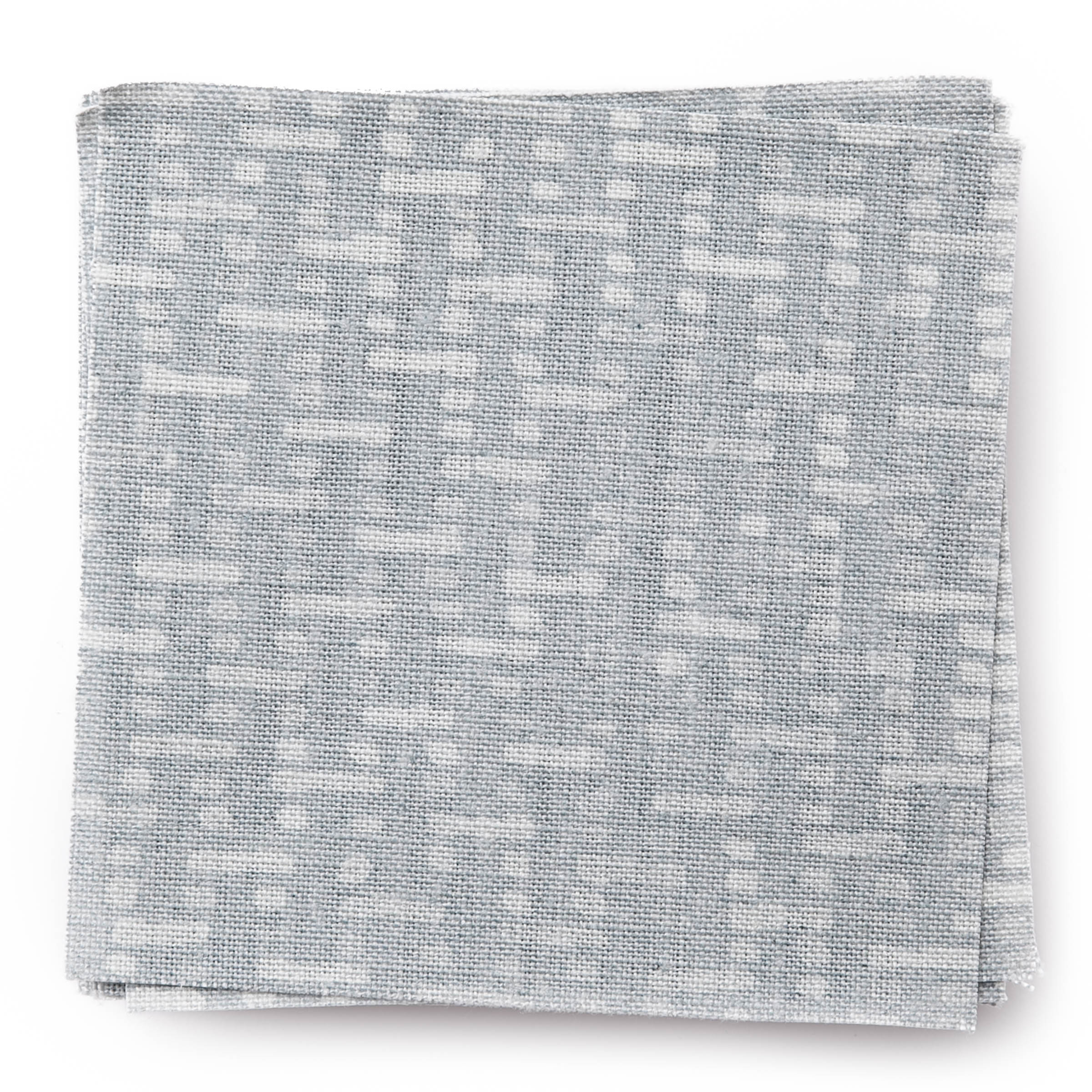 A stack of fabric swatches in a small-scale grid pattern in shades of light blue.