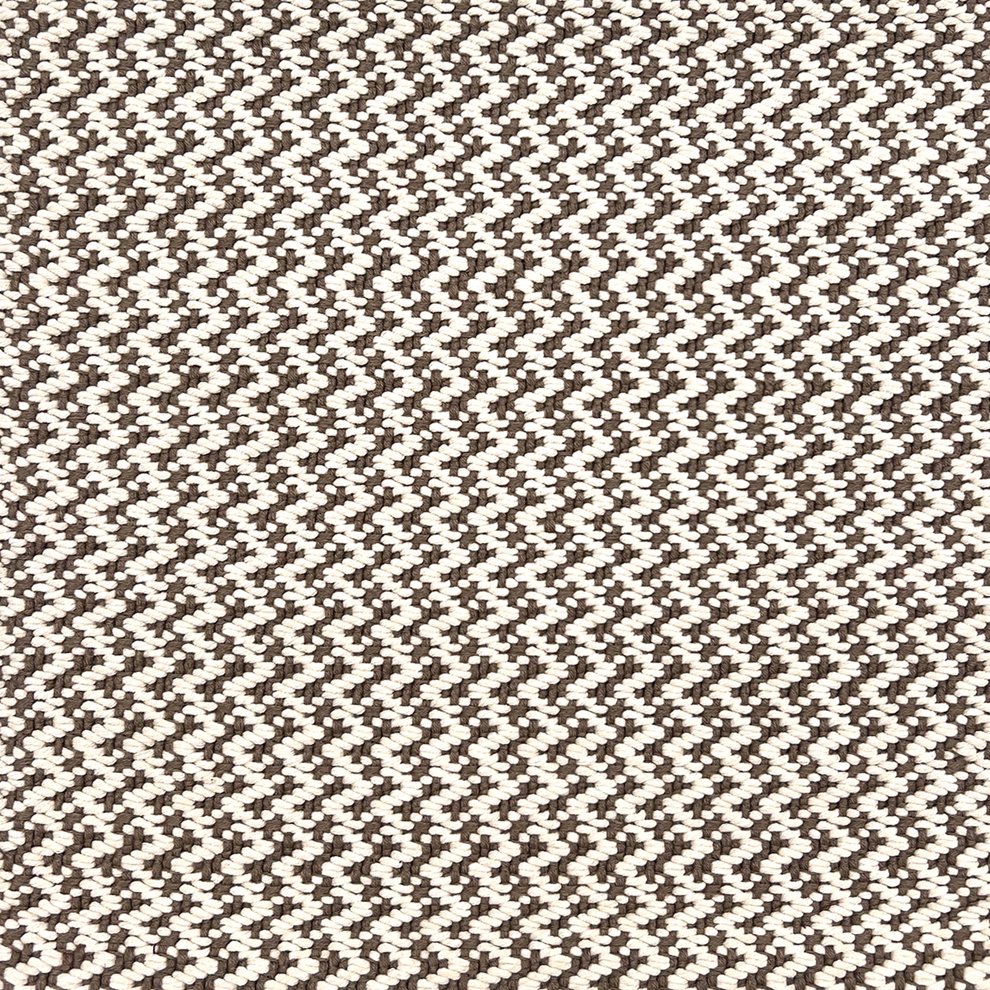 Indoor-Outdoor rug in a small scale zig zag stripe in white and brown.
