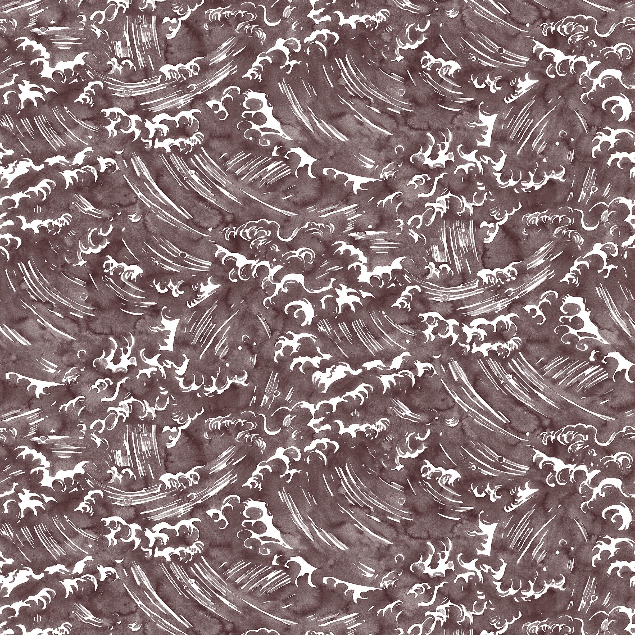 Playful wave print in white on a warm dark grey watercolor field.