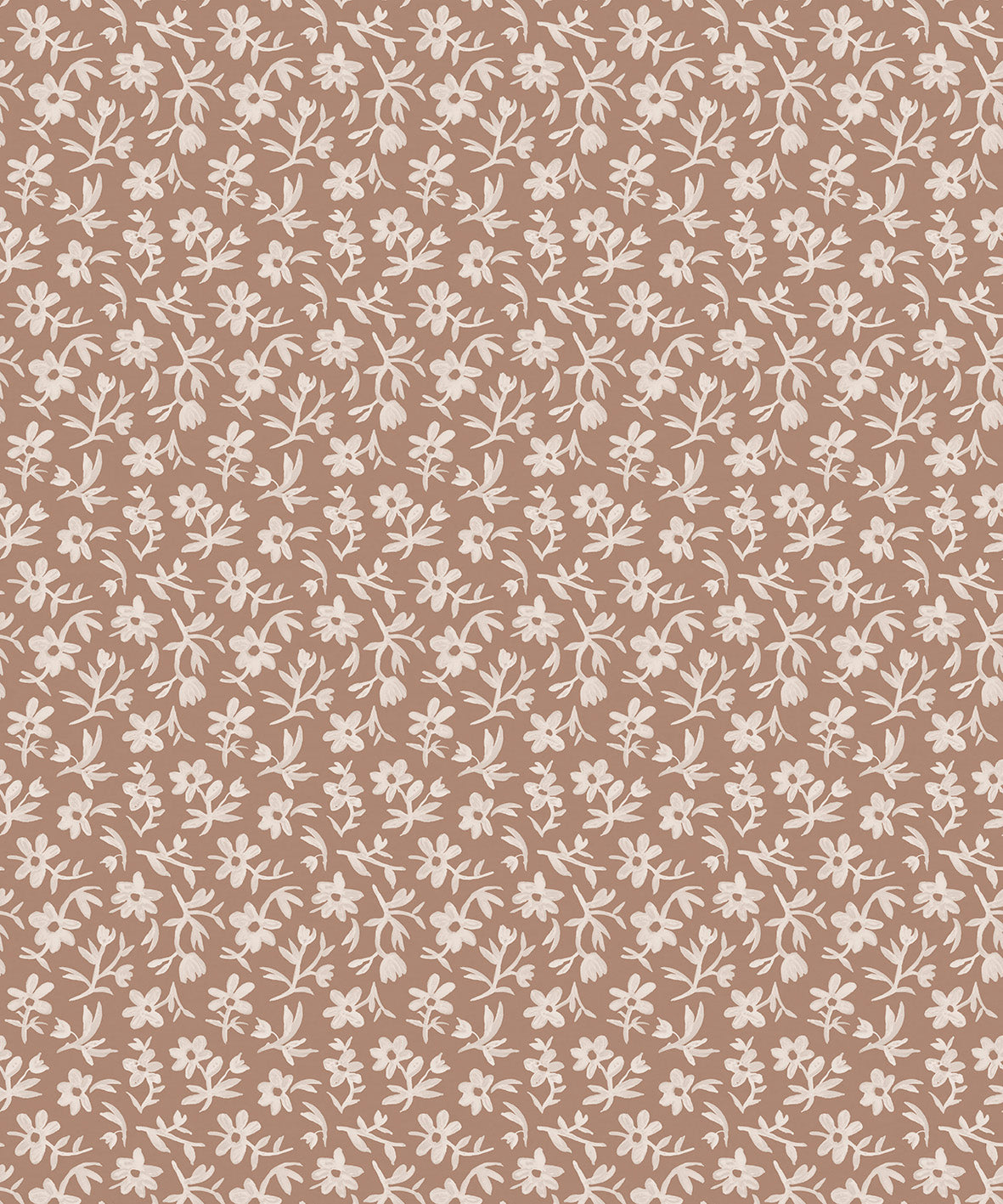 Pattern of small white flowers on a terracotta background