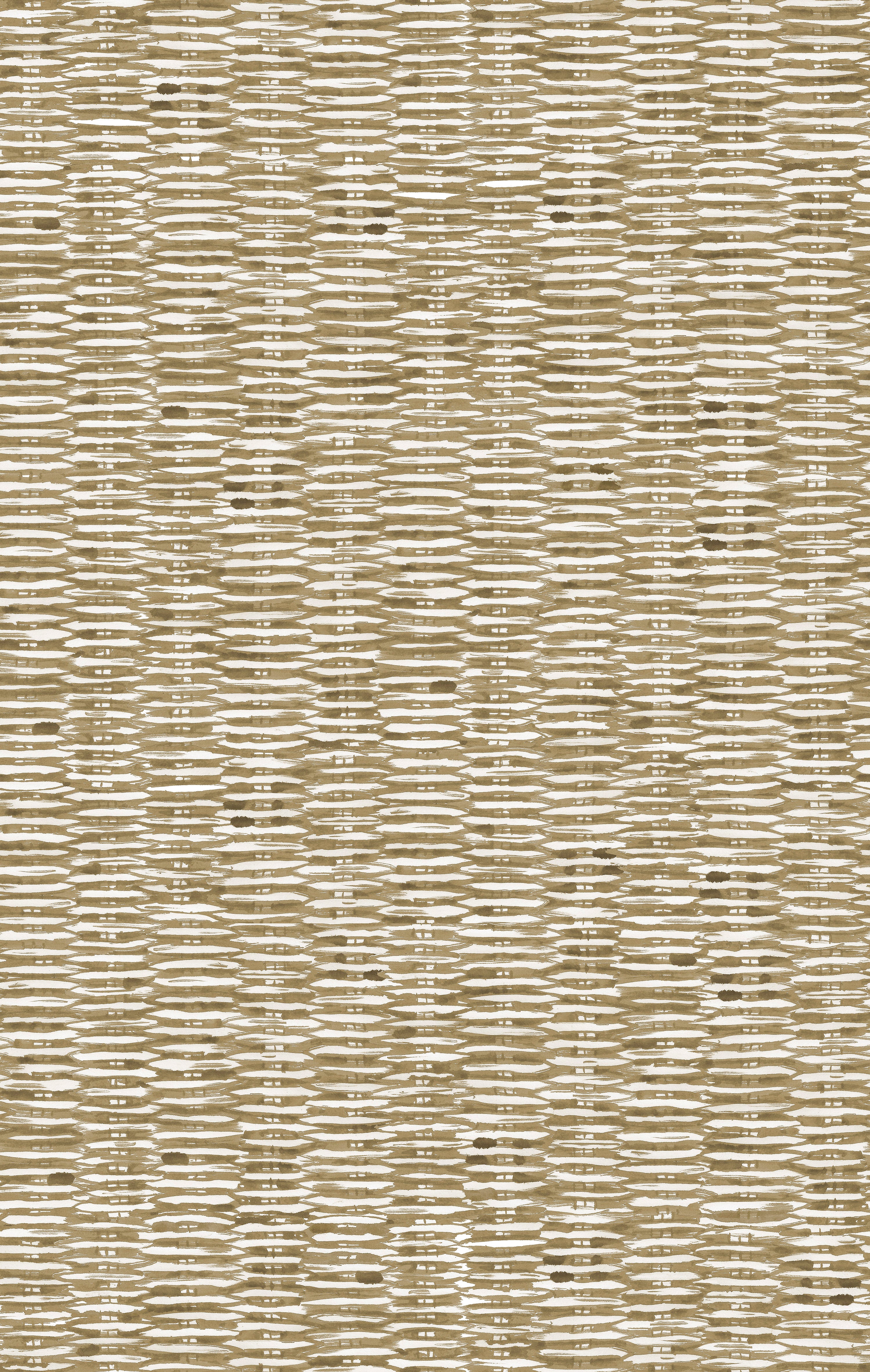 Detail of wallpaper in a textural checked print in mottled brown on a white field.
