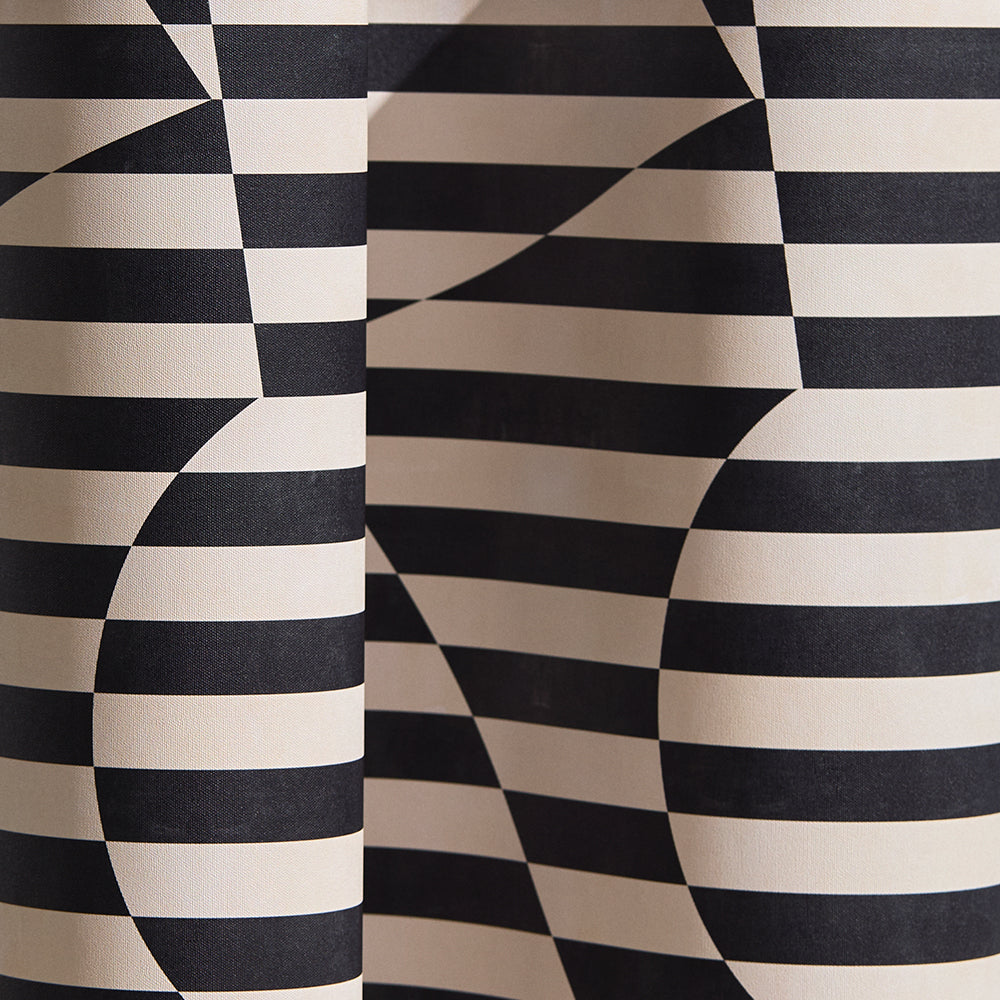 Trompe l'oeil stripe pattern with geometric shapes in cream and black.