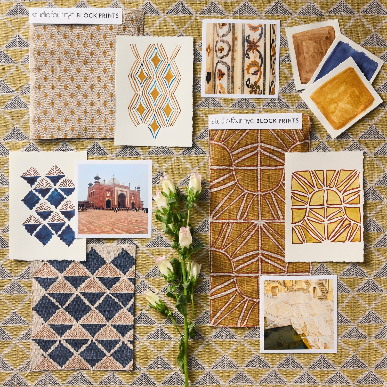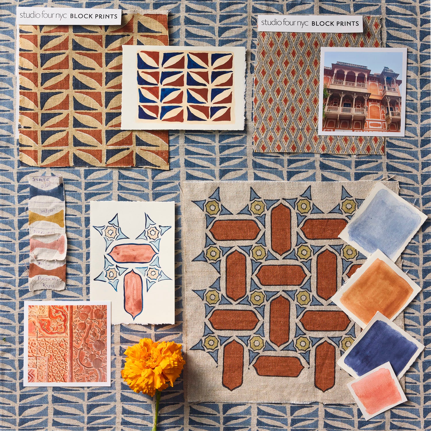 Studio Four is thrilled to introduce our very first collection of block prints, rooted in our reverence for this storied textile tradition and a deep love of travel. The designs recall memories of past journeys and pay tribute to destinations from our recent trip to India, where we met with our textile partners.