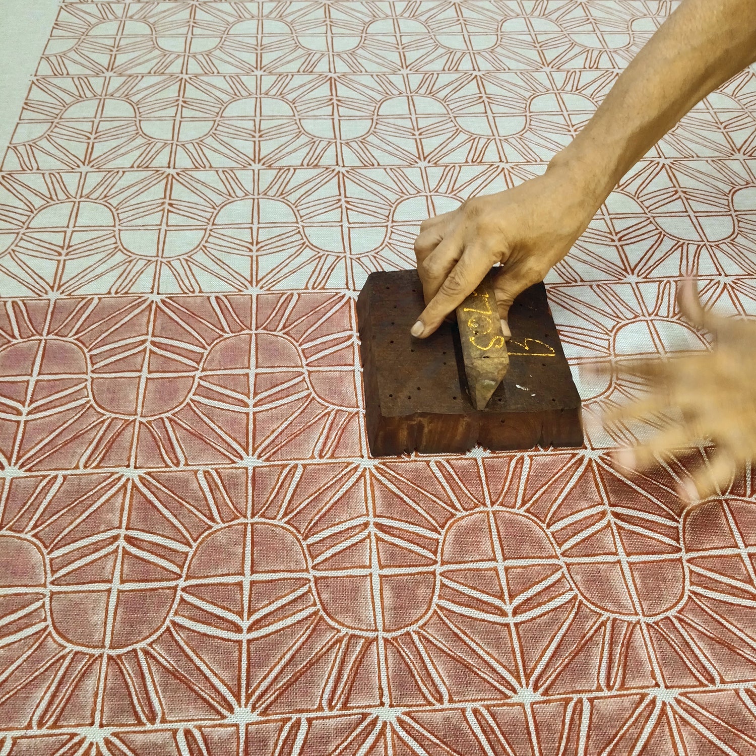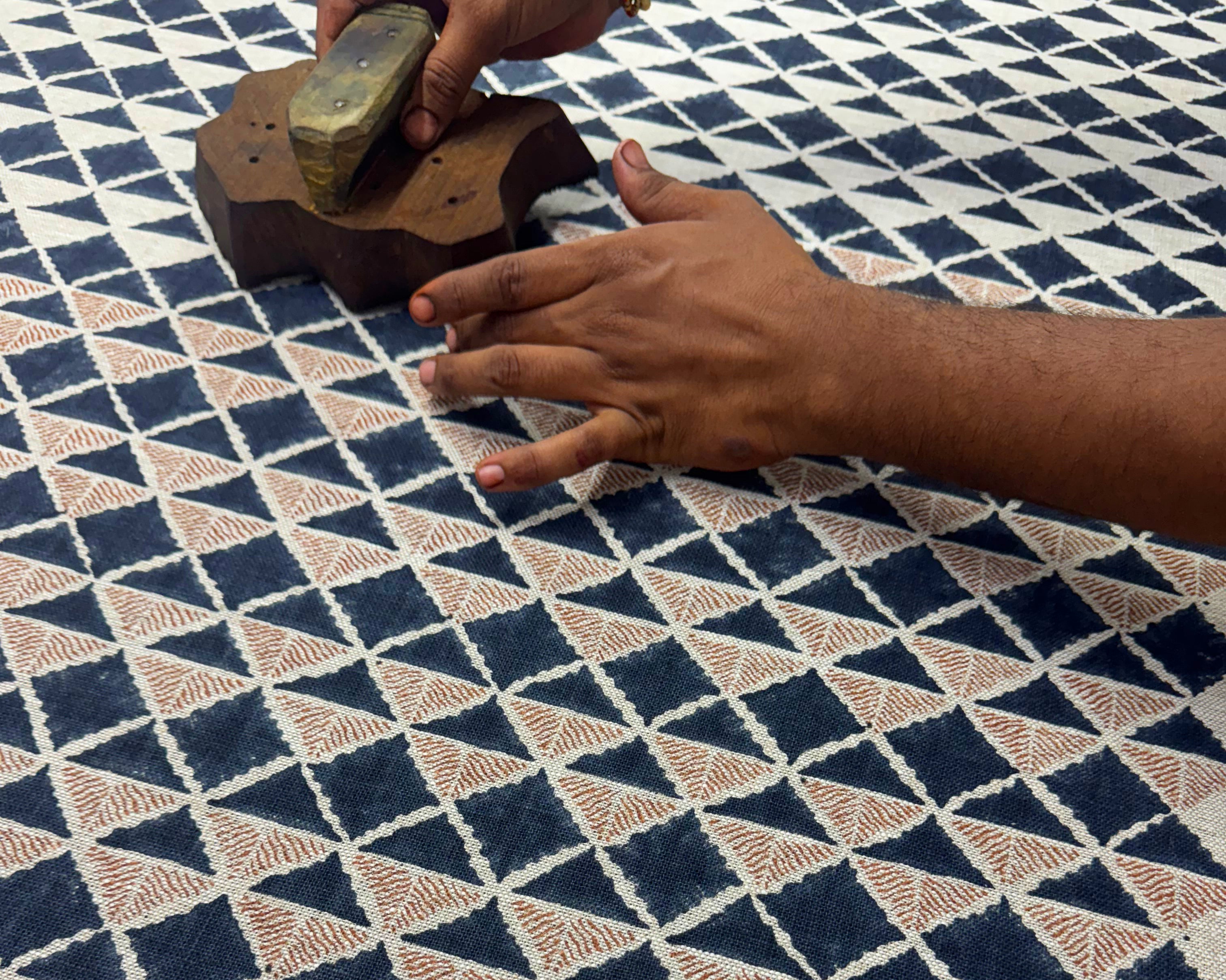 We worked with master artisans in India to produce the designs utilizing techniques passed down through generations. These artisans are essential to each part of the process—block carving, color mixing, and printing.