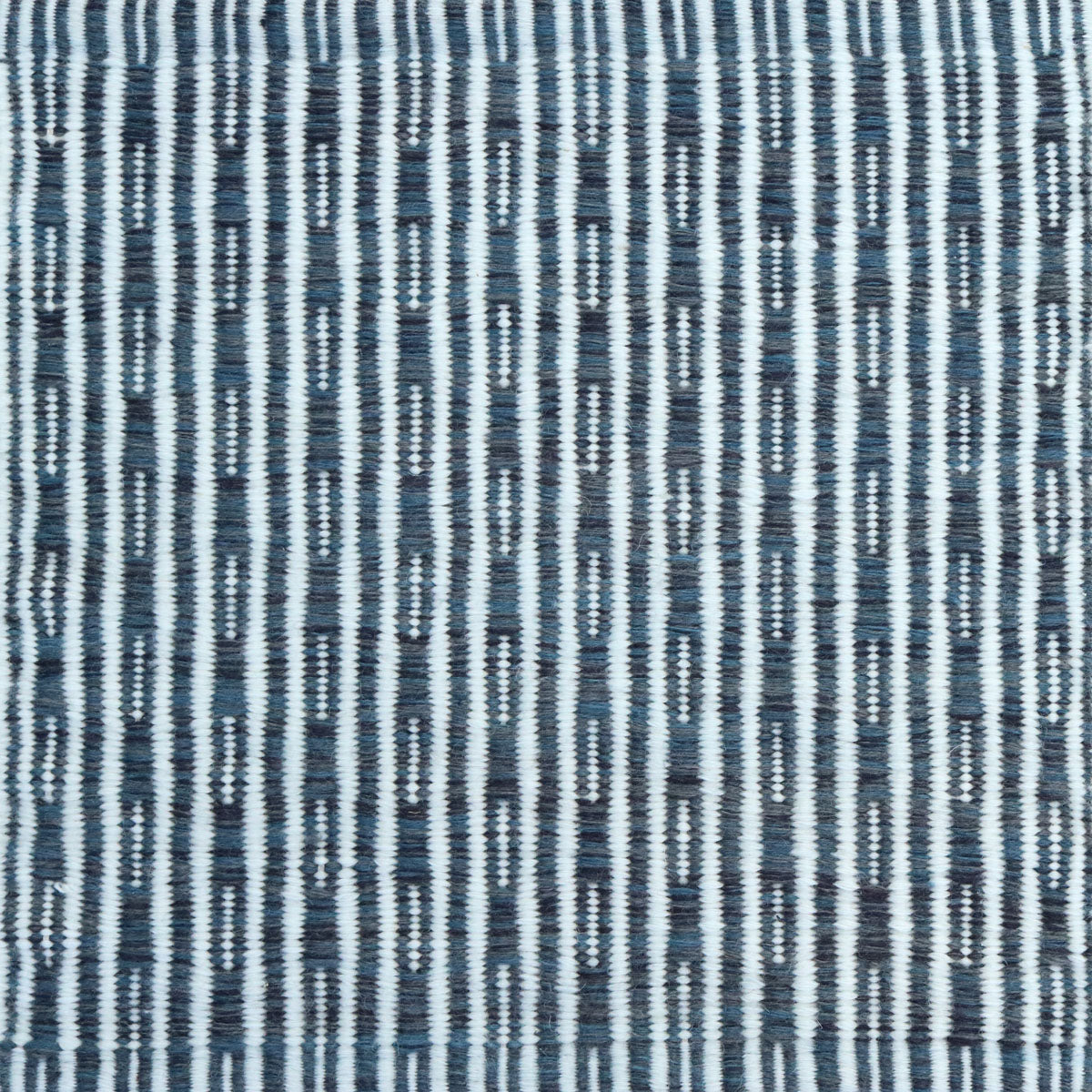 Flatweave rug in a solid and dashed stripe in cream on slate blue field