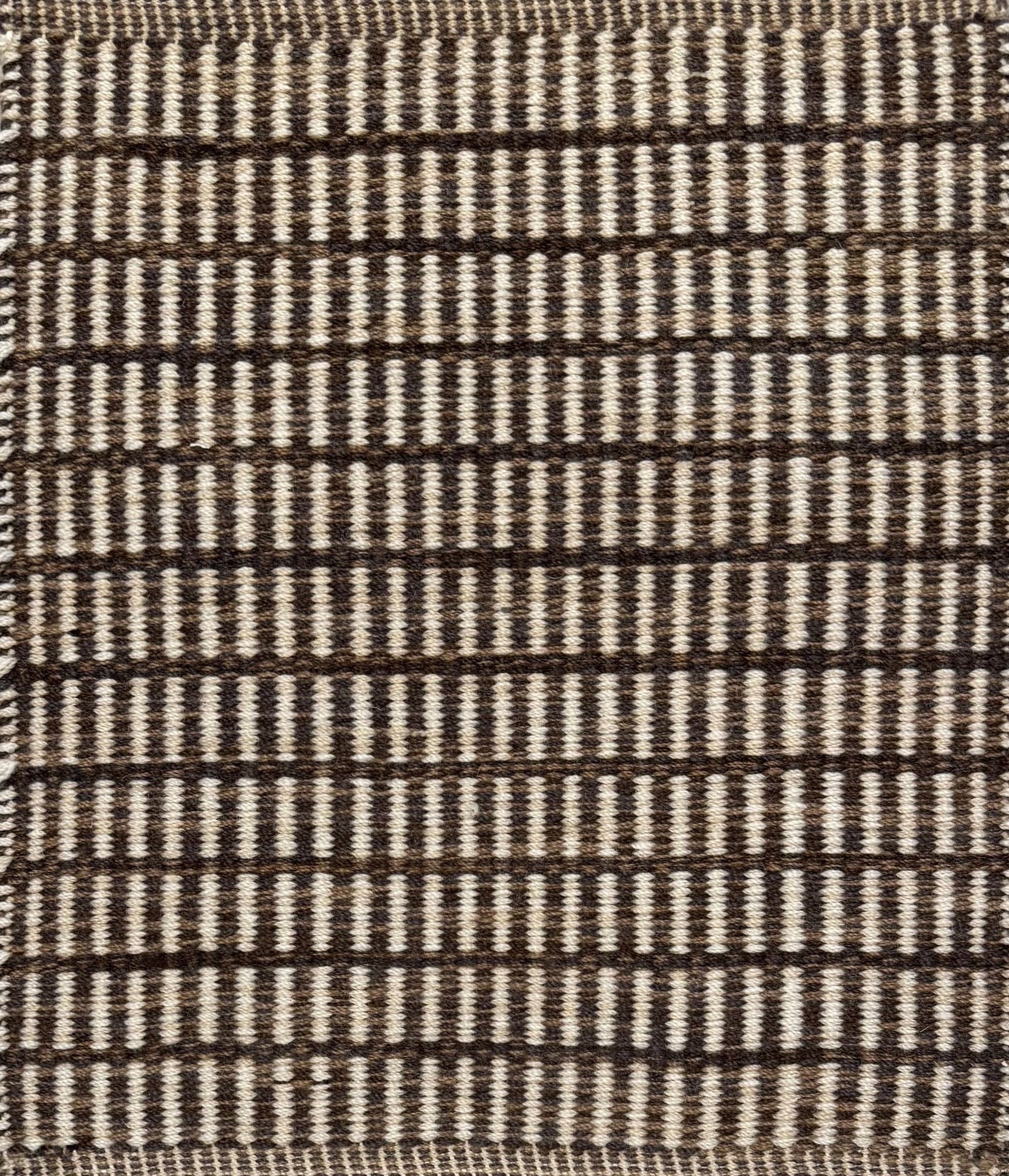 Textured rug with a brown and beige  checker pattern