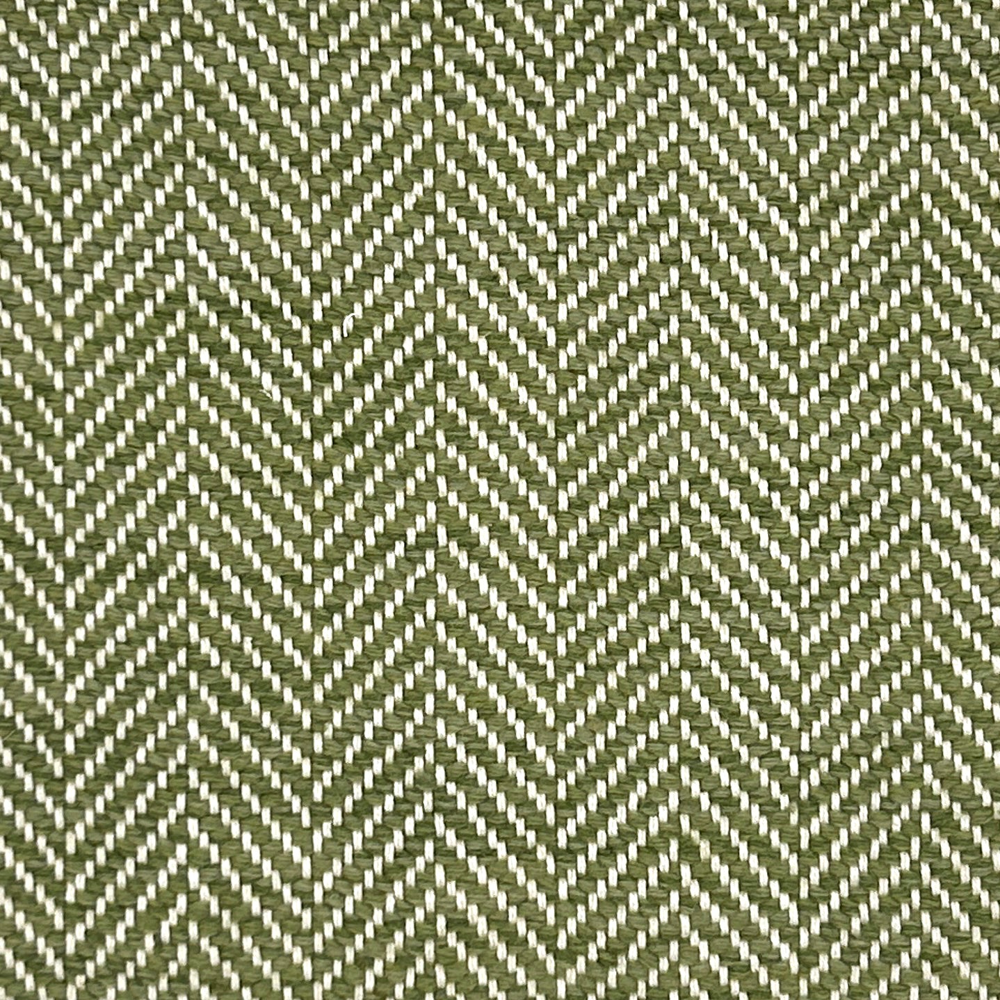 Handwoven rug in herringbone pattern in green and white.