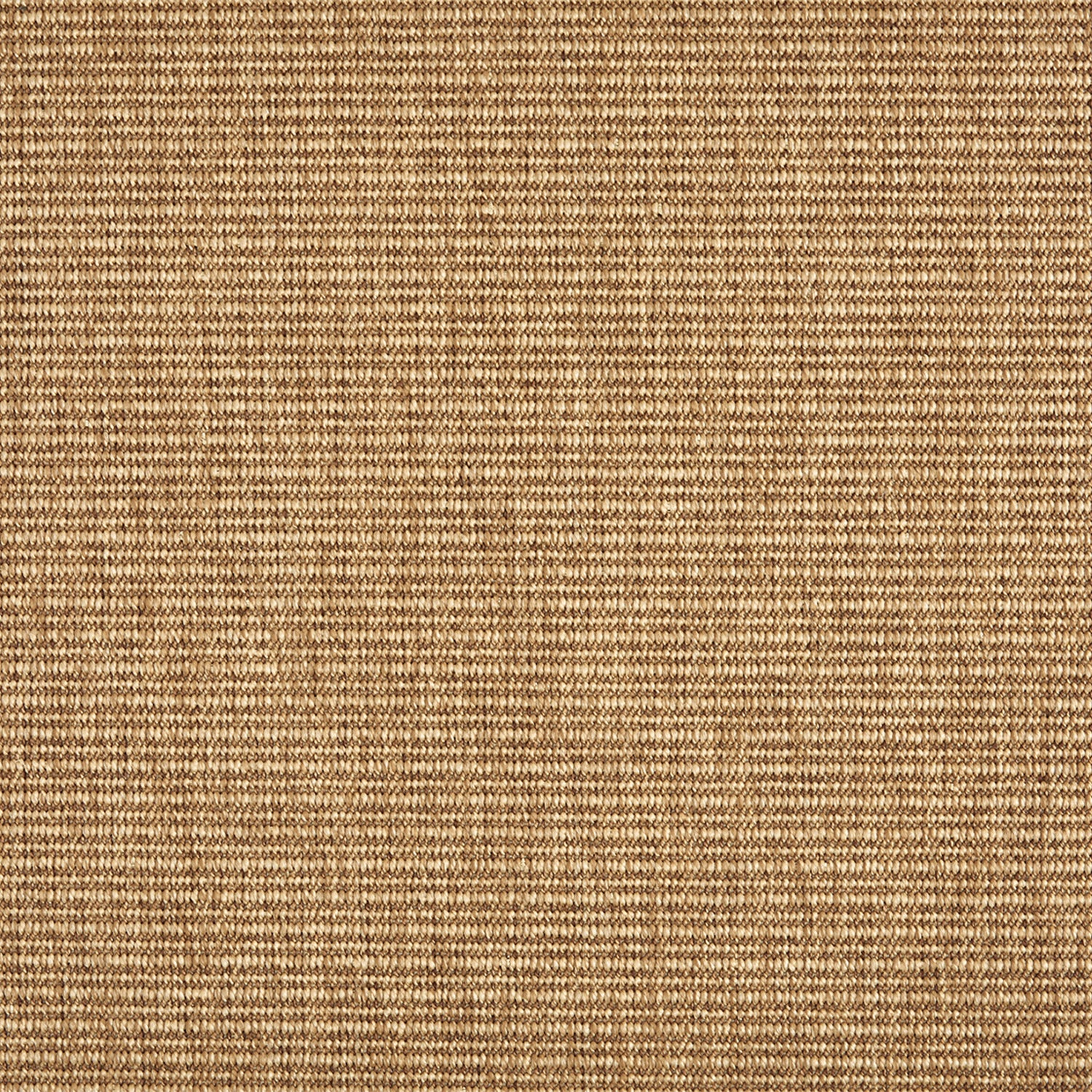 Outdoor broadloom carpet swatch in a ribbed flat weave in mottled tan and brown.