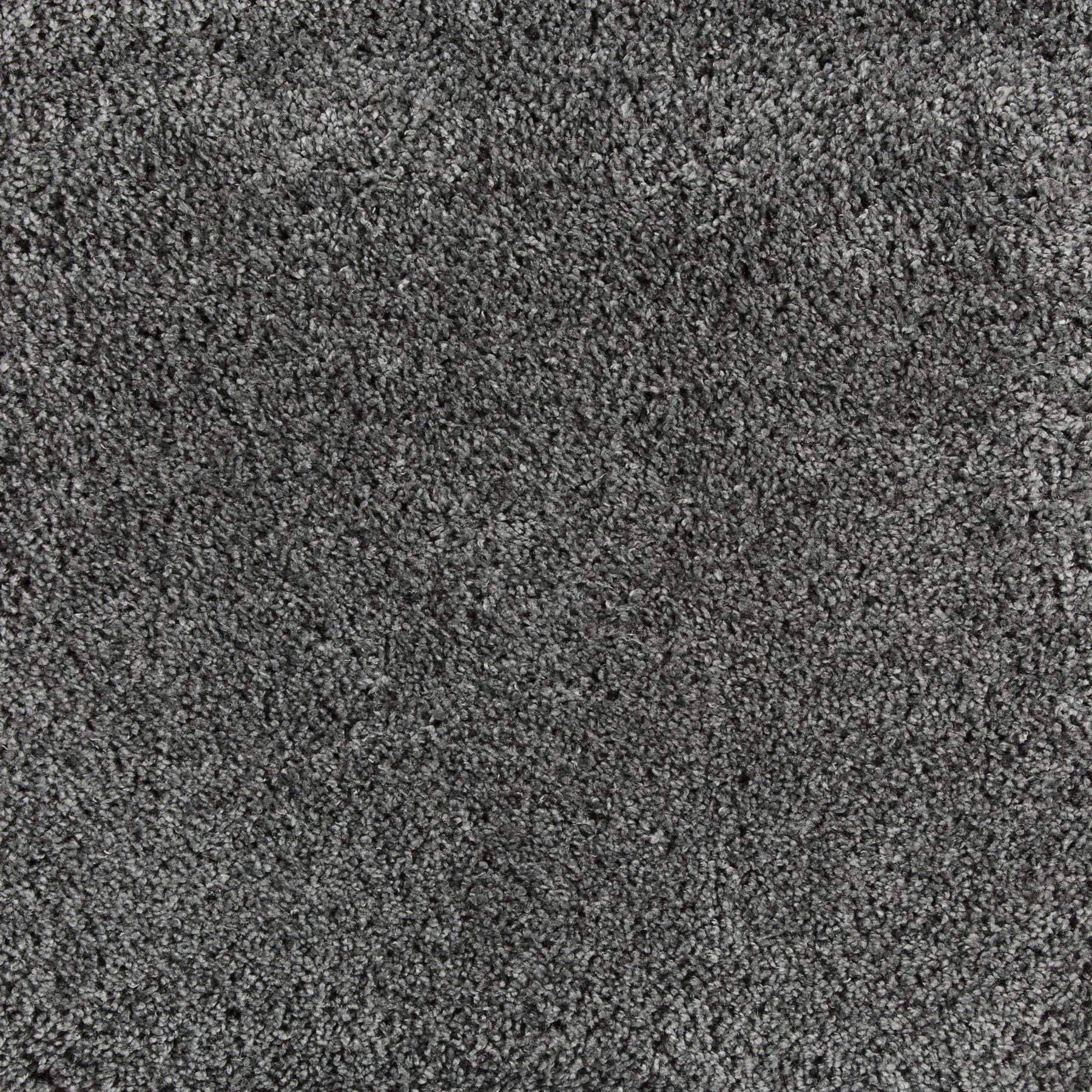 Synthetic broadloom carpet swatch in a cut pile texture in charcoal.